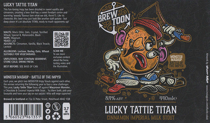 Lucky Tattie TitanCinnamonImperial Milk StoutBB 25/11/20258 . 4 %( Monster Mashup Battle Of The Impys )