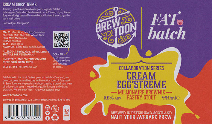 Cream Egg'StremeMillionaire Brownie Pastry Stout( Collaboration Series )BB 25/03/20265 . 5 %( Collaboration With Fat Batch ) |
