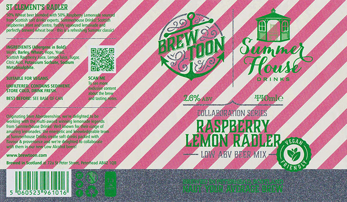 Raspberry Lemon RadlerLow ABV Beer Mix( Collaboration Series )19/03/20242 . 6 %( Collaboration with Summer House Drinks ) |