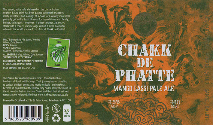 The Pakora BarMango Lassi Pale AleBB 21/05/20264 . 5 %( Collaboration With The Pakora Bar, Edinburgh ) |