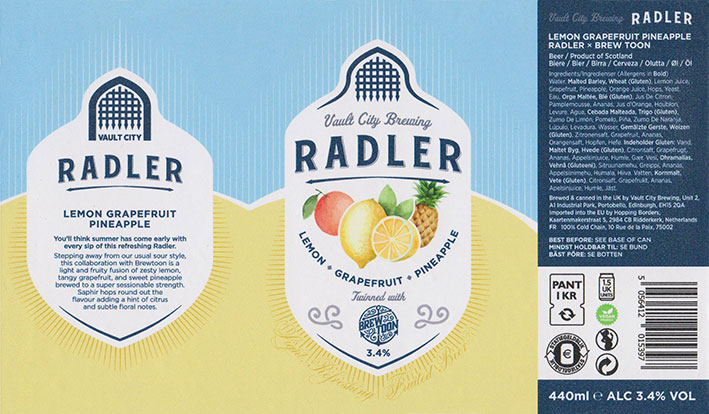 RadlerLemon, Grapefruit, PineappleBB 12/02/20263 . 4 %( Brewed In Collaboration With Vault City Brewing ) |