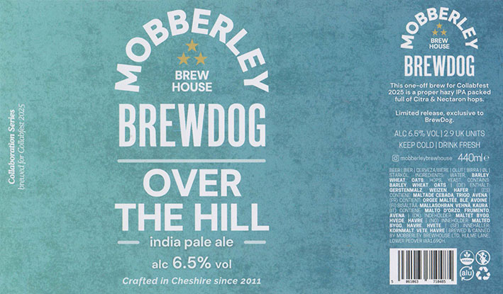 Over The HillIndia Pale AleBB 15/05/20266 . 5 %( Collaboration With Mobberley Brew House )( Brewdog Collabfest 2025 ) |