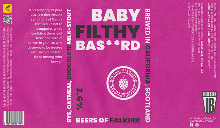 Baby Filthy Bas**rdRye, Oatmeal, ChocolateMilk StoutCanned On 14/12/20243 . 6 % |