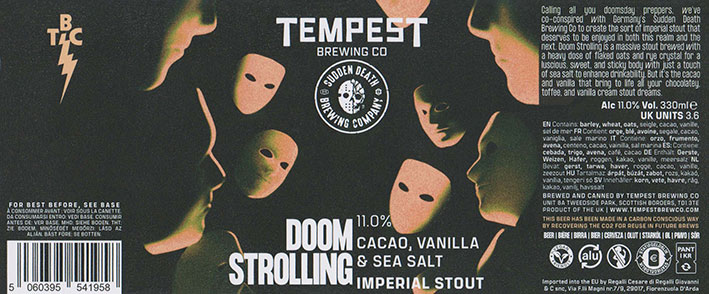 Doom StrollingCacao, Vanilla & Sea SaltImperial StoutBB 10/12/202711 . 0 %( Collaboration With Sudden Death Brewing Company ) |
