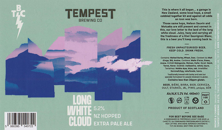 Long White CloudNZ Extra Pale AleBB 18/02/20215 . 4 % |