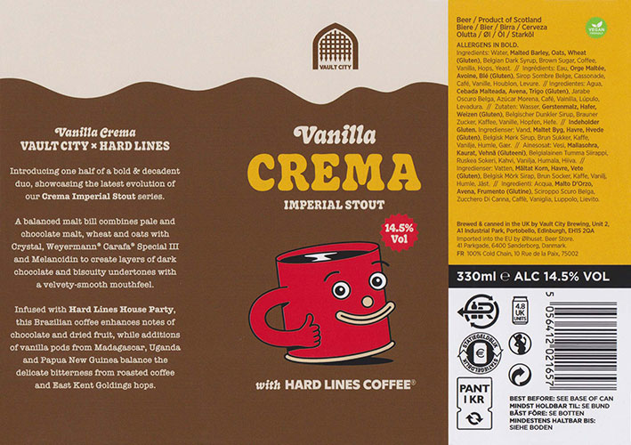 Vanilla CremaImperial StoutBB 26/02/203014 . 5 %( Brewed In Collaboration With Hard Lines Coffee ) |