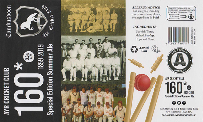 160* Special EditionSummer AleBB 01/08/20203 . 6 %( Ayr Cricket Club 160 Years 1859-2019 )