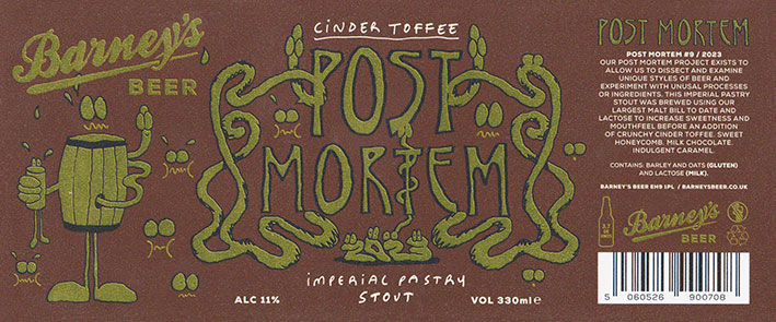 Post MortemCinder ToffeeImperial Pastry StoutPost Mortem #9 / 2023BB 22/09/202511 . 0 % |