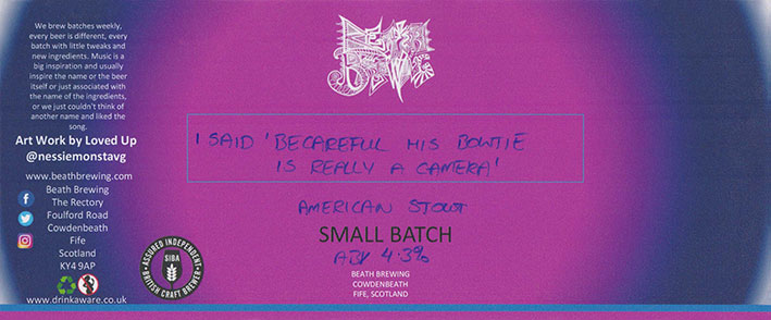 I Said "Be Careful His BowtieIs Really A Camera"American StoutBB 00/00/20214 . 3 %