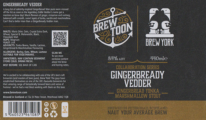 GingerbreadyGingerbread Tonka Marshmallow Stout( Collaboration Series )BB 30/07/20258 . 4 %( Collaboration With Brew York )