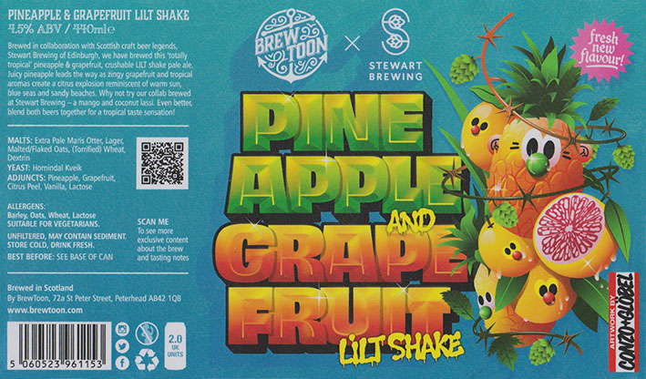 Pineapple & GrapefruitLilt Shake26/12/20244 . 5 %( Collaboration with Stewart Brewing ) |