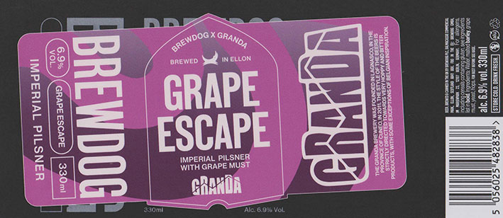 Grape EscapeImperial Pilsner With Grape MustBB 24/01/20256 . 9 %( Collaboration With Granda Brewery ) |