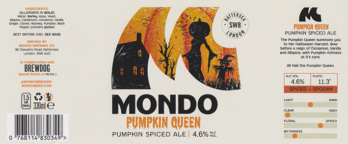 Pumpkin QueenPumpkin Spiced AleBB 31/10/20264 . 6 %( Collaboration With Mondo Brewing Company )( Brewdog Collabfest 2025 ) |