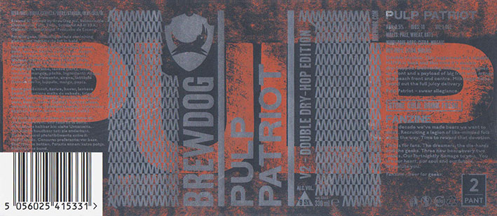 Pulp PatriotV2 - Double Dry-Hop EditionBrewdog Fanzine Box 8BB 15/10/20189 . 5 % |