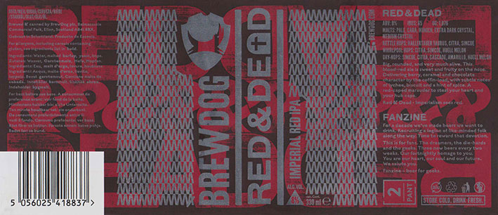 Red & DeadImperial Red IPABrewdog Fanzine Box 15BB 18/01/20198 . 0 % |
