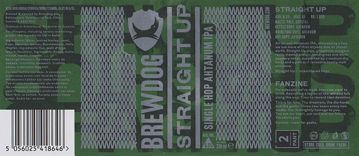 Straight UpSingle Hop Ahtanum IPABrewdog Fanzine Box 14BB 05/01/20196 . 5 % |