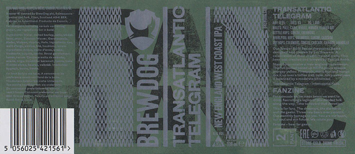 Transatlantic TelegramNew England West Coast IPABrewdog Fanzine Box 20BB 07/05/20198 . 5 % |
