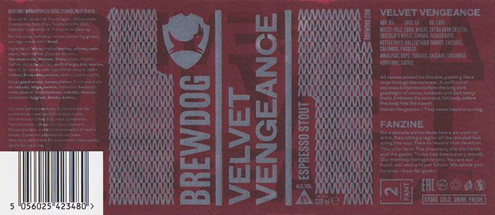 Velvet VengeanceEspresso StoutBrewdog Fanzine Box 22BB 04/04/20218 . 0 % |