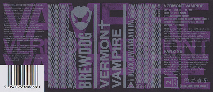 Vermont VampireBlack New England IPABrewdog Fanzine Box 15BB 18/01/20197 . 3 % |