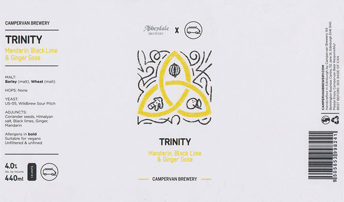 TrinityMandarin, Black Lime& Ginger GoseBB 18/11/20224 . 0 %( Brewed In Collaboration Abbeydale Brewery ) |