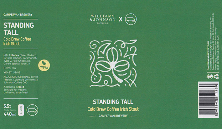 Standing TallCold Brew Coffee Irish StoutBB 04/09/20225 . 5 %( Collaboration with Williams & Johnson Coffee Co. ) |