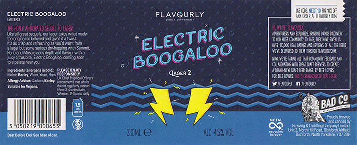 Electric BoogalooLager 2BB 27/09/20184 . 5 %( Collaboration with Bad Co. ) |