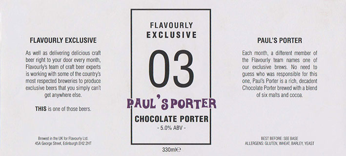 Paul's PorterChocolate PorterBB 00/00/00005 . 0 %( Flavourly Exclusive No. 03 ) |
