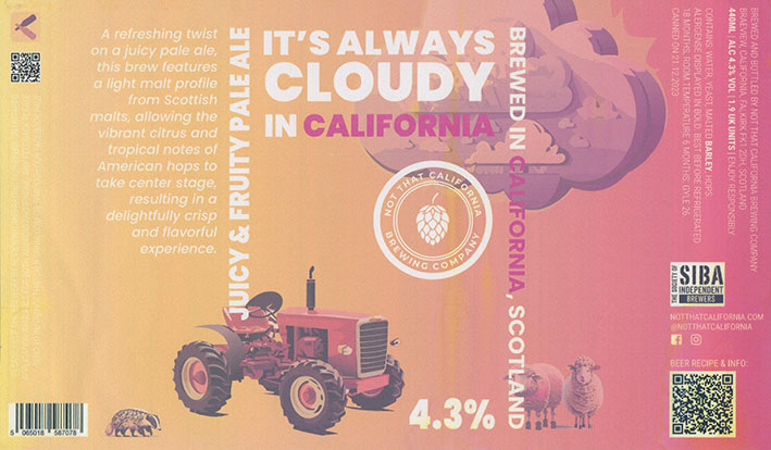 It's Always Cloudy In CaliforniaJuicy & Fruity Pale AleCanned On 21/12/20234 . 3 % |