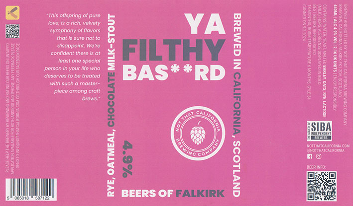 Baby Filthy Bas**rdRye, Oatmeal, ChocolateMilk StoutCanned On 14/12/20243 . 6 % |