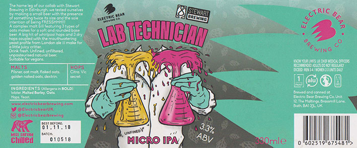 Lab TechnicianMicro IPABB 01/11/20183 . 3 %( In Collaboration With Electric Bear Brewing Co. ) |