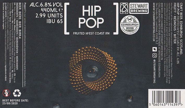 Hip PopFruited West Coast IPABB 23/08/20206 . 8 %( In Collaboration With Brewdog, Edinburgh ) |