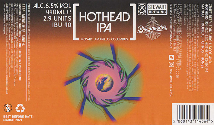 Hothead IPABB 31/03/20216 . 5 %( In Collaboration With Brewgooder ) |