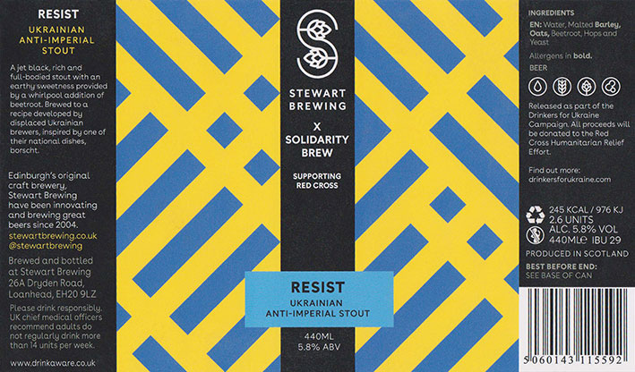 ResistUkrainian Anti-Imperial StoutBB 29/03/20235 . 8 %( In Collaboration With Solidarity Brew ) |