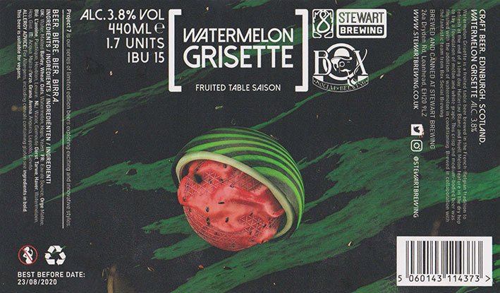 Watermelon GrisetteFruited Table SaisonBB 23/08/20203 . 8 %( In Collaboration With Box Social Brewing ) |