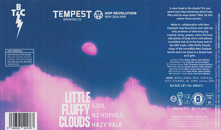 Little Fluffy CloudsNZ Hopped Hazy PaleBB 25/12/20254 . 0 %( Collaboration With Hop Revolution New Zealand ) |