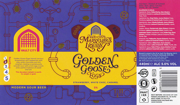 Marvellous LiquidsGolden Goose EggsStrawberry, White Choc, CaramelModern Sour BeerBB 13/04/20275 . 0 % |